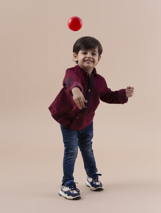 Maroon Velvet Corduroy Button-Up Shirt - Classic Fit