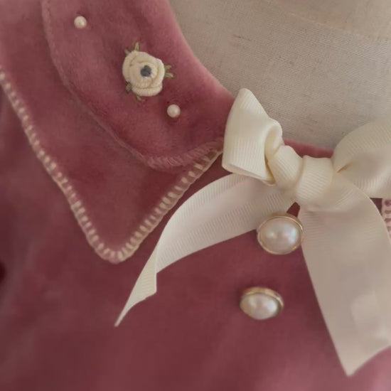 The Peach Dress with French Knots is a graceful and timeless piece designed to elevate any special occasion. This stunning dress features a soft peach fabric adorned with intricate hand-embroidered French knots, offering a delicate yet sophisticated look. The classic silhouette, combined with the charming details, makes this dress both elegant and playful, perfect for your little one’s next celebration.