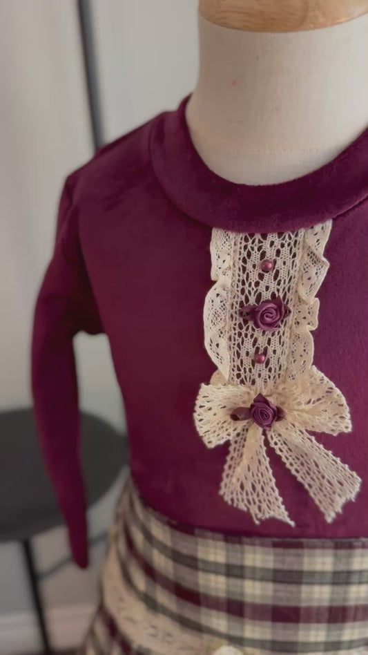 Plum Top & Checkered Skirt Set - Timeless Elegance
