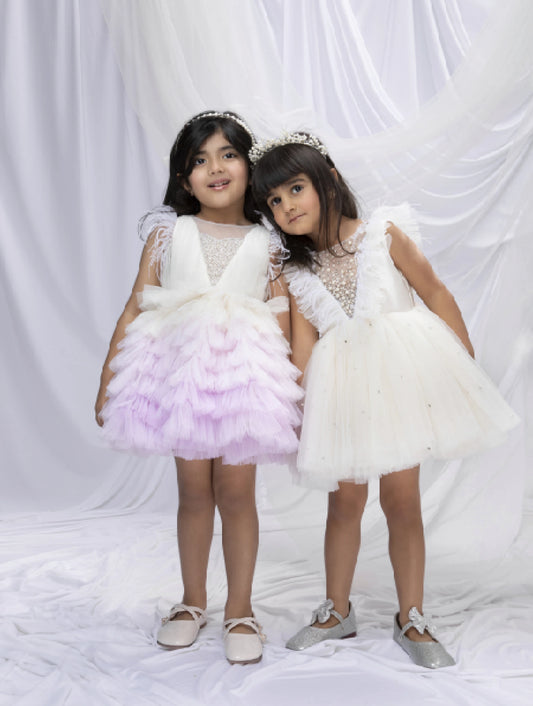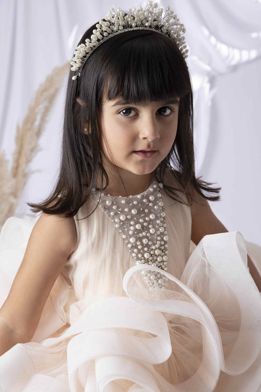 Pearl Tulle Princess Dress for Girls | Handmade Flower Girl | Party Dress