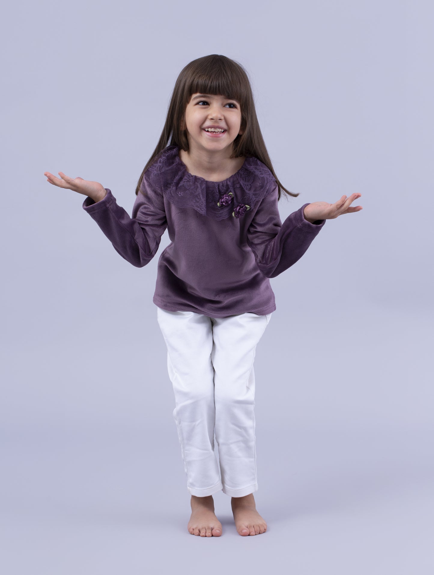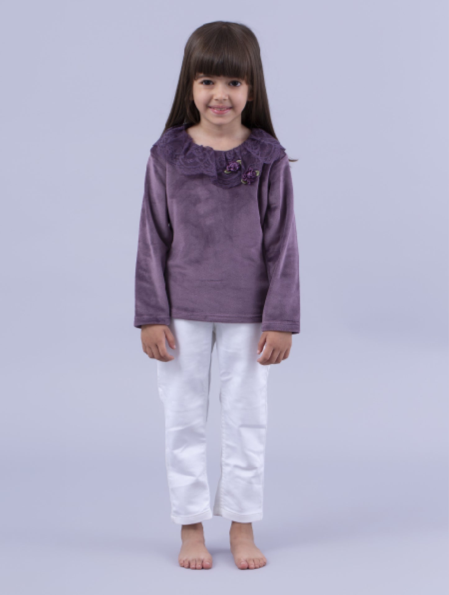 Le haut violet avec dentelle est un haut en tricot confortable qui équilibre parfaitement sophistication et espièglerie. La riche couleur violette ajoute une touche vibrante, tandis que la dentelle délicate et les détails floraux apportent un charme élégant au design. Ce haut élégant est le complément parfait à toute garde-robe d'hiver, offrant à la fois confort et look raffiné.