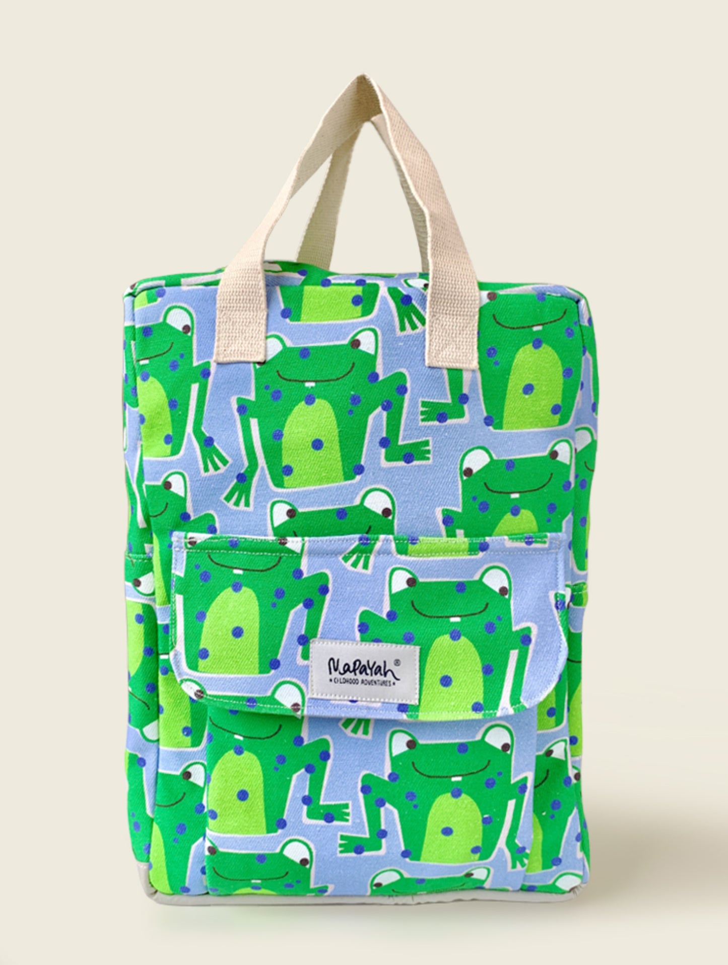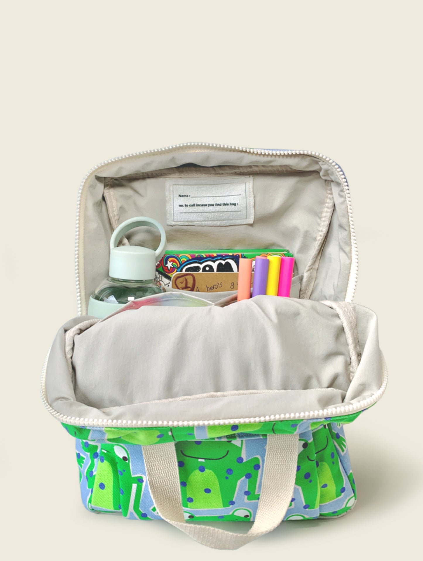 It features a secure water bottle carrier, a dedicated spot for an iPad, and a pocket for essentials. Plus, its waterproof lining keeps little treasures safe from unexpected rain. And when things get messy, ""Carry"" is a breeze to clean. Designed with bespoke prints by the studio at MAPAYAH, it's not just a bag; it's a statement of style and sustainability. Get their buddy bag today and let the adventures begin!